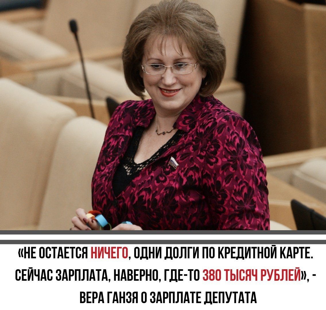 В Екатеринбурге благотворительный фонд «Человечек» собрал 1,6 тыс. рублей для депутата Госдумы Веры Ганзя, которая жаловалась на маленькую зарплату в 380 тыс. рублей. На сайте фонда сообщается, что «Газня попала в затруднительное положение». «Благотворительный фонд „Человечек“ выражает надежду, что мы всем миром сможем спасти слугу народа. Просим всех неравнодушных людей подарить шанс на жизнь и счастливое будущее! Все собранные средства будут переданы лично в руки малоимущей. Спаси Вас Боже!» — говорится под постом о сборе средств. Депутат Госдумы от фракции КПРФ, член комитета по бюджету и налогам Вера Ганзя ранее заявила, что ей не хватает 380 тыс. рублей, которые она получает в качестве зарплаты. «Так как представительских расходов нет, то от этой зарплаты не остается ничего, одни долги по кредитной карте. По крайней мере, это у меня. Вот региональная неделя. Я пошла в детский дом. У меня просят пылесосы, у меня просят то, другое, третье. Я все покупаю. Плюс партия. Вот и все