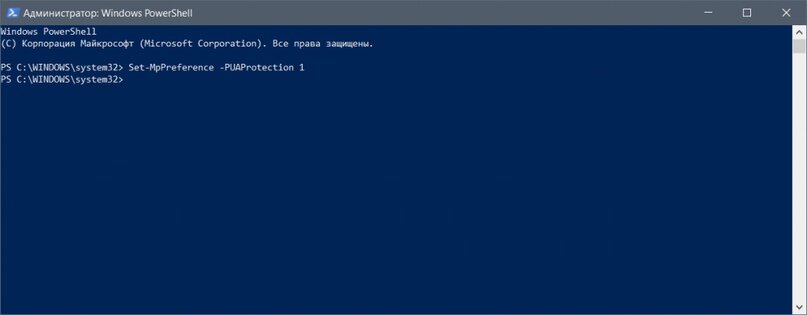 Защитник Windows является встроенным антивирусом в систему, и по своим возможностям находится на уровне бесплатных версий антивирусов от других производителей. И кроме защиты от вирусов и встроенного брандмауэра он так же имеет возможность защищать от потенциально нежелательных программ (ПНП). Что это за вид ПО? К нему относятся программы, которые меняют домашнюю страницу и поисковик, встраивают рекламу на сайты, а так же различные «левые» оптимизаторы системы, которые по факту просто находят множество проблем и за их устранение требуют купить полную версию, и так далее. Все они по факту вирусами не считаются, но и пользы от них, конечно, маловато — и именно такое ПО можно блокировать Защитник Windows. Увы — пока что эта функция официально доступна только для Windows 10 Enterprise, однако ее можно достаточно просто включить на любых других редакциях системы. Для этого запустите PowerShell от имени администратора (быстрее всего через нажатие на Пуск правой кнопкой мыши) и введите кома
