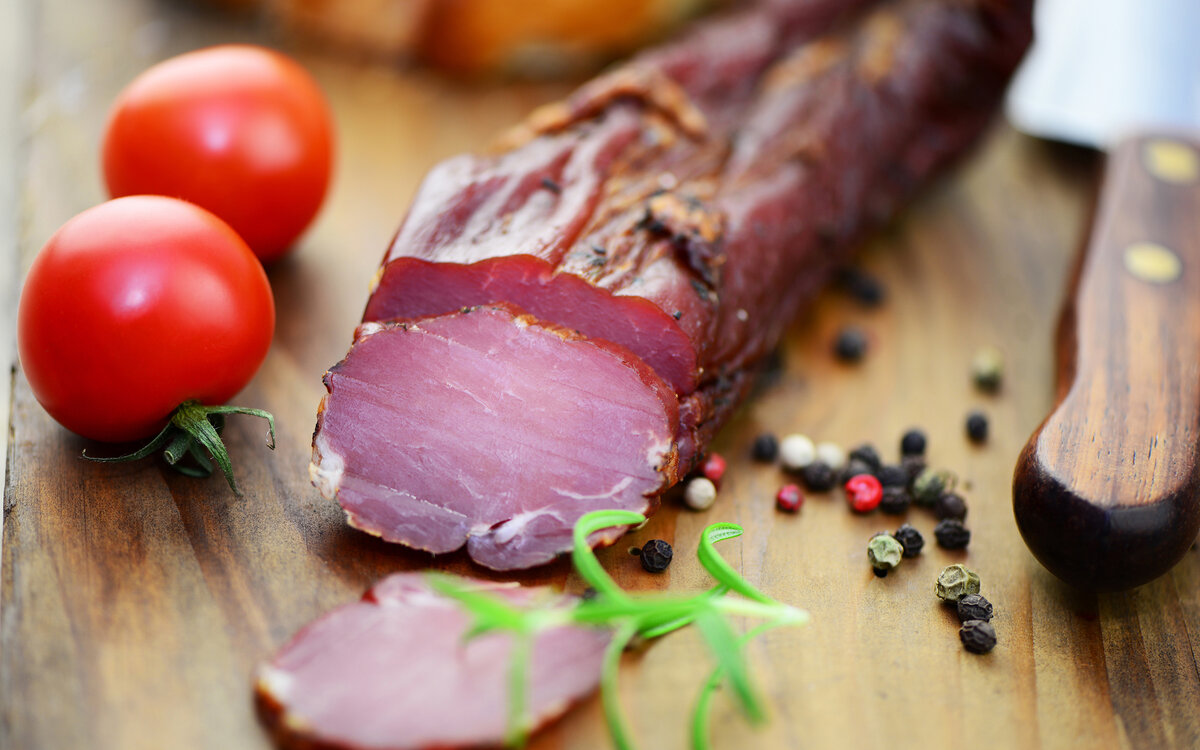 Аромaтный сыровяленый бaлык получaется из мяса говядины (телятины). Специи и приправы делают эту закуску настоящим мясным чудом. Балык из мяса – это деликатес, который обладает специфическим вкусом, приятным ароматом и нежной консистенцией.