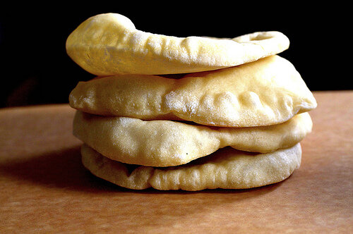 Арабская лепешка или очень вкусный воздушный хлеб широко используется для приготовления бутербродов в кафе быстрого питания.Можно ли приготовить питу дома? Предлагаю простой рецепт приготовления этого хлеба. Сначала приготовим дрожжевое тесто. На стакан теплой воды потребуется пакетик сухих дрожжей (4 гр.).По чайной ложке соли и сахара,одна столовая ложка оливкового масла, 100 граммов муки первого сорта и 300 граммов муки высшего сорта. В емкость просеять всю муку, смешать с дрожжами.В стакане с водой растворить соль и сахар, влить масло и размешать.Постепенно влить смесь в муку и замесить тесто. Дать ему подойти минут 40.Обмять и снова поставить на 40-45 минут. На припудренную мукой разделочную доску выложить тесто.Разделить его на 8 равных частей.Сформировать шарики и поставить под салфетку "отдохнуть" 10 минут. В это время разогреть духовку до 250 градусов.Раскатать тесто в лепешки размером 12-15 см.Выложить их на противень, застеленный бумагой.Поставить в духовку и немного убавит