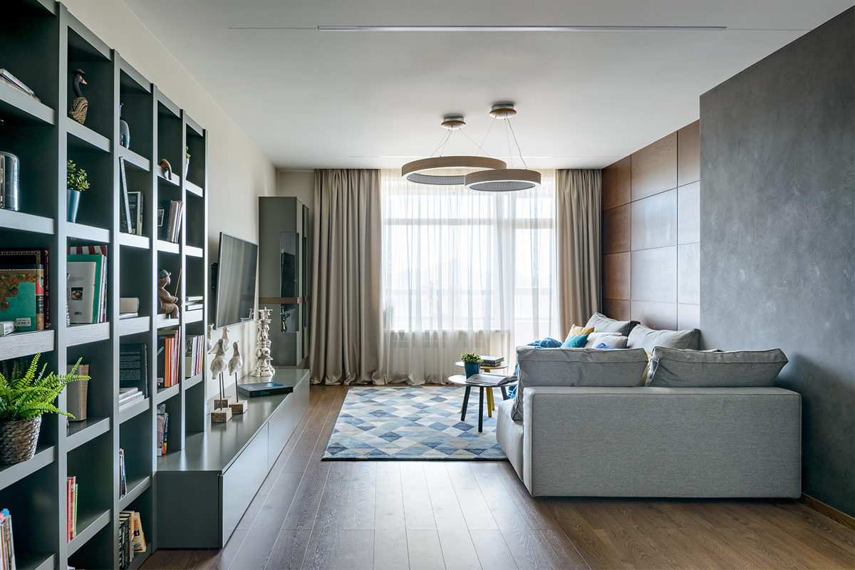 В данном проекте удачным образом сочетается спокойная основа в бежево-коричневой гамме, которая при наполнении яркими акцентами становится по-настоящему очень необычным и уникальным интерьером.