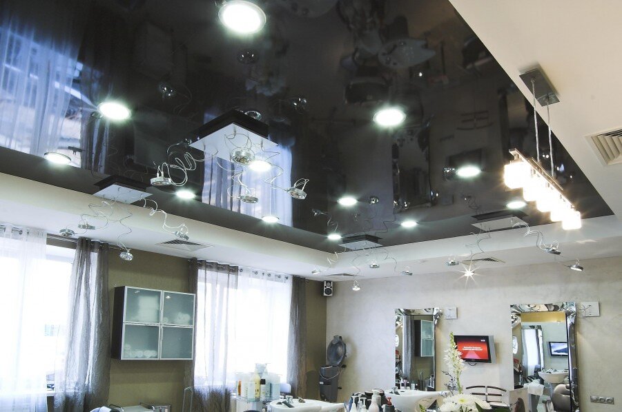 Отражая свет и предметы, глянцевые потолки визуально увеличивают высоту помещения.