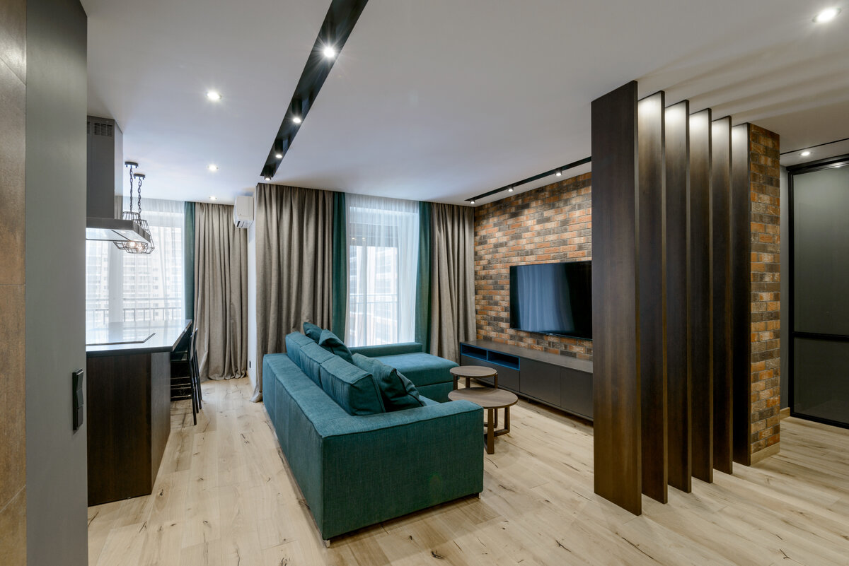 Интерьер квартиры в стиле LOFT в ЖК Квартал «На Декабристов» 90 м^2