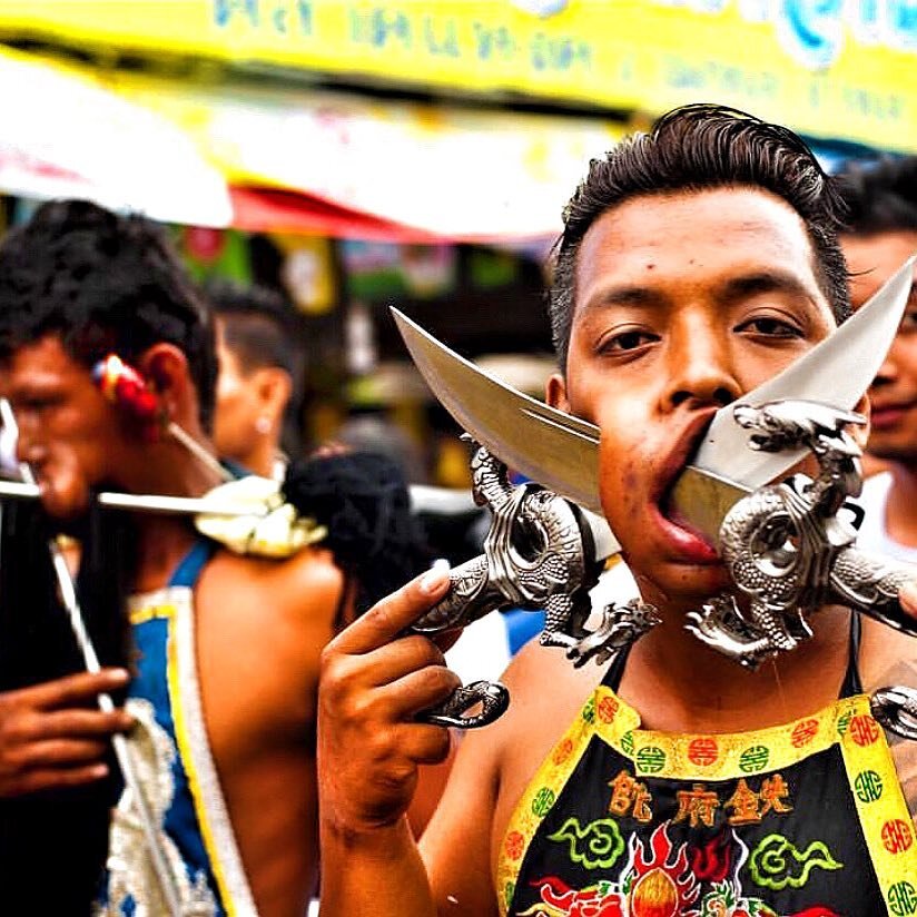 Что вы представляете, когда слышите "вегетерианский фестиваль"? Добрые и веселые люди в белых одеждах и ярмарки с вегетерианскими блюдами, смех, счастье, добро и веселье? По крайней мере я именно так и представляла себе, пока не увидела. К стати, частично - это верно, еда и одежда и все такое, но есть нюанс)) Немного истории: на Пхукете раньше было много оловянных шахт, где трудились китайцы и, в один не самый прекрасный день, началась эпидемия неизвестной болезни, люди умирали каждый день. В это время выступать приехала труппа китайских артистов. Когда они увидели все происходящее, решили, что своим недостойным поведением и пренебрежением к даосским традициям прогневили богов. Тогда они стали питаться только в вегетерианских традициях, молиться и проводить разные ритуалы. И, о чудо! Болезнь отступила, а местные жители так были впечатлены ,что сделали из этого ежегодный праздник. ⠀ Внешне выглядит так - все протыкают свое тело разными предметами, избивают тело булавами