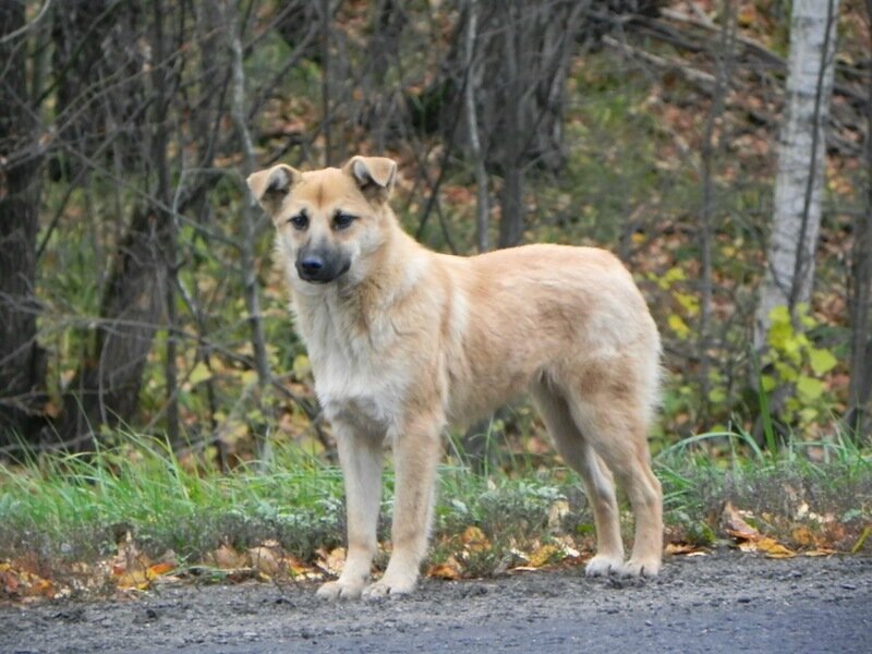 При этом пес, при наличии рядом жилых домов, некуда не уходит от этого места. У меня сложилось впечатление, что собаку или выбросили с проезжающей машины или она как-то потерялась. Пес очень внимательно просматривает каждую машину, проезжающую мимо него.