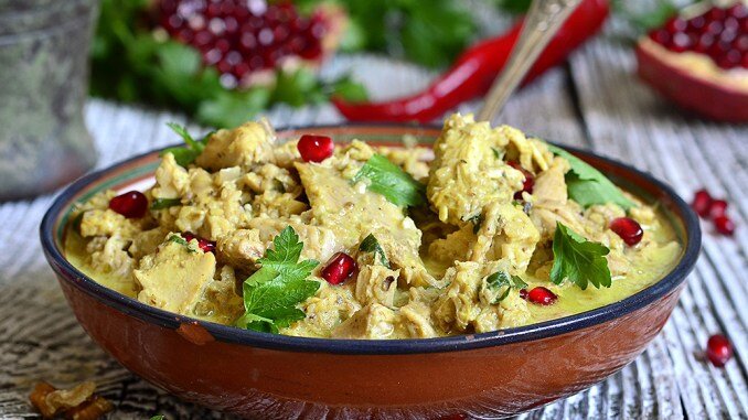 Описание: Тот кто понимает толк в грузинской кухне знает, что мало что может сравниться с сациви. Это блюдо грузины, как правило, готовят на Новый год. Но мы будем готовить его на любое торжество или просто потому, что хочется. Прежде всего, нужно понимать, что сациви довольно калорийное блюдо и есть его в больших количествах может только тот, кто не заботится о своей фигуре. Но полакомиться этим фантастическим блюдом не откажется никто. Если готовить ужин на двоих, то целую курицу можно не варить. Достаточно будет двух крупных куриных окорочков. В Грузии сациви готовят из целой курицы или индейки, но мы в России будем готовить это блюдо из куриных окорочков, для того чтобы не пачкать пальцы рук когда будем наслаждаться вкусом сациви. Ингредиенты: Приготовление: 1) Окорочка нужно вымыть и удалить жир. Берем небольшую кастрюлю и кипятим воду. Затем кладем в воду окорочка так, чтобы вода накрывала курицу. В кастрюлю кладем маленькую луковку и варим курицу 50 минут. 2) Курицу надо вынут