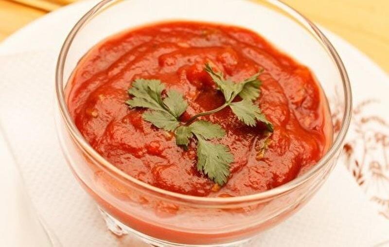 Всем доброго времени суток))) Данный рецепт соуса не предусматривает его длительное хранение. Для приготовления соуса потребуется качественная, не кислая томатная паста. Преимущество соуса в быстроте его приготовления, отсутствии тепловой обработки, возможности контролировать его вкусовые качества (пряный, острый, остро сладкий...). Понадобятся: 1. Пол стакана свежей, не кислой томатной пасты. 2. 1/4 стакана холодной, кипяченой воды. 3. 2 зубчика чеснока, свежая зелень по 2-3 веточки (укроп, кинза (кориандр)) 4. Специи: соль по вкусу, сахар по вкусу, 2 горошка душистого перца (размолоть), 1 гвоздичка (Syzygium aromaticum) (размолоть), молотый имбирь 1/5 ч.л., лимонная кислота по вкусу, острый красный молотый перец по вкусу. Дальнейшее приготовление простое, пасту разбавляем водой (водой можно контролировать консистенцию нашего соуса), мелко нарезанную зелень и чеснок перемешиваем с разбавленной пастой. Специи добавляем по вкусу, постоянно пробуем. Даём настоятся 10-15 минут. Соус гото