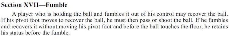 Часть 1 - http://abulahov.com/news/probezhka-v-nba-chast-1.html Сегодня мы продолжим анализировать правила НБА, чтобы понимать, когда атлеты допускают пробежку, а когда все происходит в рамках правил. Начнем с ПРАВИЛА 4 – СЕКЦИЯ 17 (Потеря контроля), стр. 20 Если игрок, удерживающий мяч, допустил потерю контроля, он может вновь восстановить его. Если при этом его опорная нога оторвалась от пола, то он должен отдать пас или бросить мяч. Если после потери и восстановления контроля его опорная нога не совершала такого рода движений, то игрок имеет тот же статус, что и до потери мяча. Игрок может выронить мяч из рук, например, при памп-фейке, или просто потерять над ним контроль. Но он может спокойно восстановить контроль, не отрывая опорную ногу, и это будет в рамках правил. Если же он выронил мяч, и оторвал опорную ногу, он все еще может бороться за мяч. Но лишь в воздухе, отдав пас или выполнив попытку броска. В противном случае, это будет второе касание опорной ноги после отрыва,