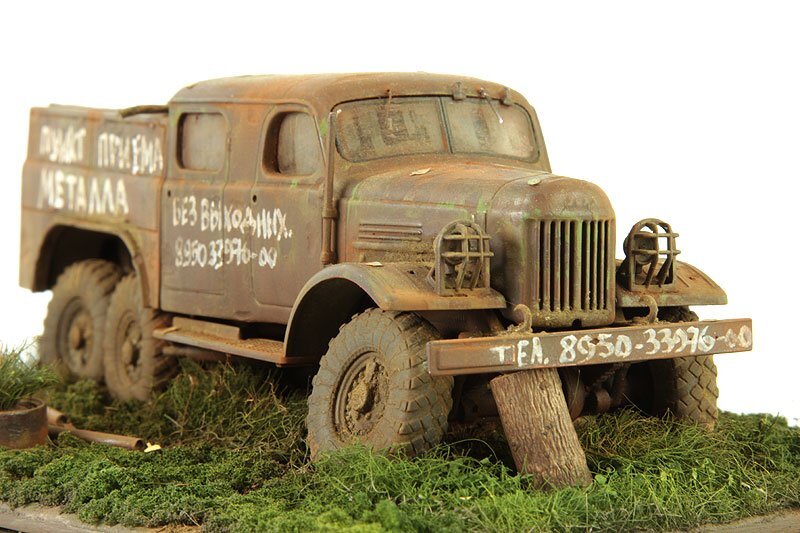 Увидел в интернете вот такое фото и решил запилить себе такую модель. Под перепил пошла пожарная машина, сделанная в масштабе 1:43 на китайской фабрике. Сначала было убрано пожарное оборудование, а кузов был разобран под дальнейшую перекраску. Потом всё это было собрано заново, из пластика выполнена другая задняя часть. Нанесены следы эксплуатации, ржавчина, объявления. Эту модель мы делали в 2014 году, она давно в чьей-то коллекции. Но у нас на сайте есть другие Мастерская Моделстрой. Моделизм - это наука.