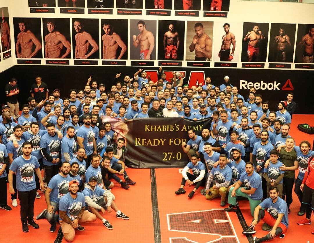 Чемпиона UFC в лёгком весе Хабиба Нурмагомедова провели на бой с Конором МакГрегором. После финальной тренировки Хабиба перед боем в American Kickboxing Academy прямо в зале целая армия фанатов россиянина под крики и мотивационные речёвки пожелала ему успехов в предстоящем сражении. Напомним, что в следующие выходные в Лас-Вегасе бой Нурмагомедова с МакГрегором возглавит турнир UFC 229.