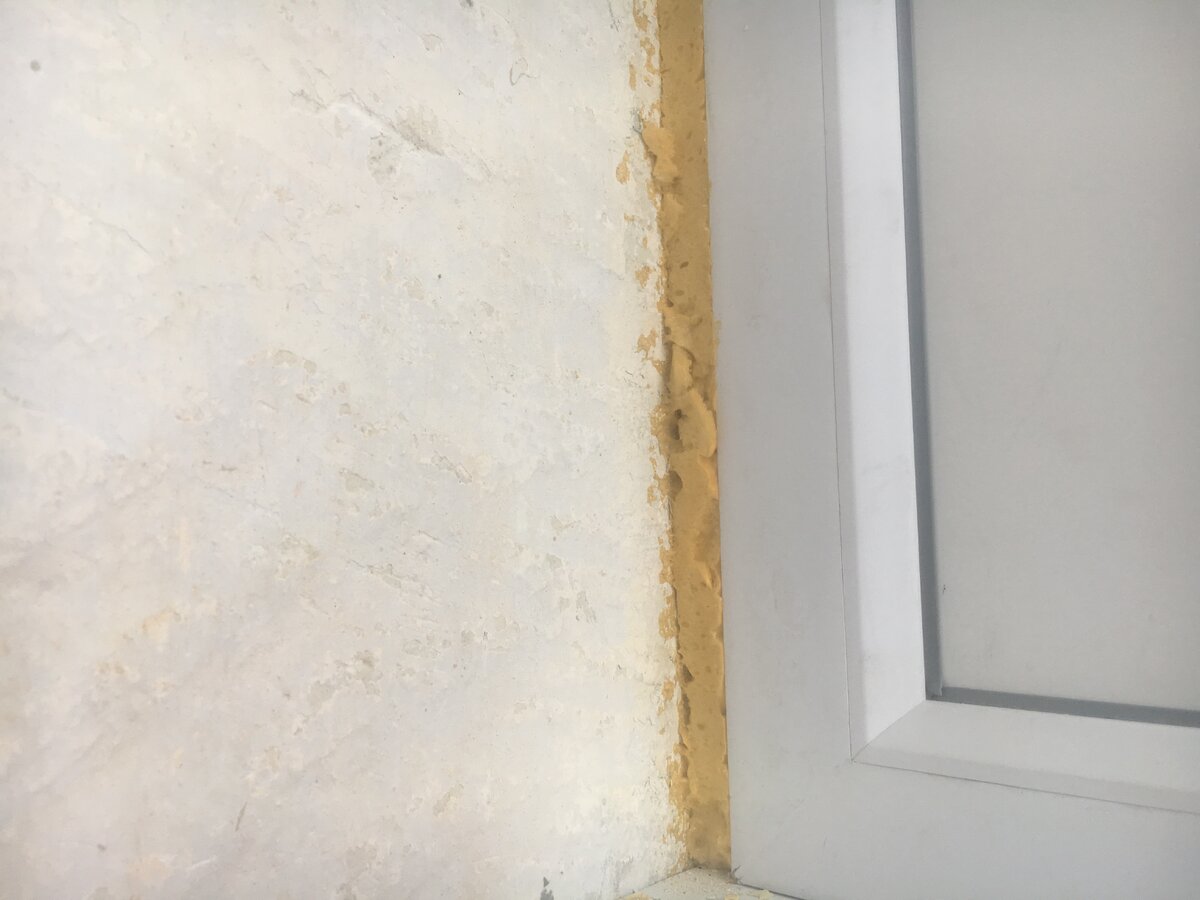 Монтажники сделали свою работу, а вот что делать с пеной между рамой окна и стеной? Внутри понятно - теплые откосы из сэндвич-панелей, а что снаружи? Почему нужно закрывать пену? Важно понимать, что пена сохраняет свои свойства при надлежащих условиях. Так вот, если оставить пену в таком состоянии, как на фото, можно увидеть, как она постепенно рассыпается под воздействием солнца. Поэтому, крайне важно закрыть стыки, чтобы в пористую основу пены не попадала влага, а также не было воздействия прямых солнечных лучей. Как Вы понимаете, закрыть пену, как минимум с наружной стороны - это не вопрос личных предпочтений или эстетического вида. Скорее речь идет о защите изделия от повреждения. Чем замазать или закрыть пену? ▪️ Наиболее популярным решением является самая обычная штукатурка. Понадобится пару часов времени, цемент, песок, шпатель и прямые руки. До нанесения штукатурки, срежьте часть пены в уровень со стеной. Были случаи, когда поверх выступающей пены наносили раствор. Выглядит это