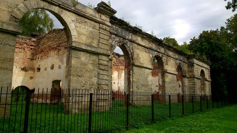 Если пройти через Сильвийские ворота (о них была предыдущая статья) в Дворцовый парк Гатчины, то совсем скоро вы наткнетесь на живописные развалины. Вдохновившись духом древности, веющим от Сильвийских ворот, ожидаешь увидеть чуть ли не аббатство или языческое сооружение. Но это не они. Это развалины оранжереи. Вот как выглядела Лесная оранжерея в Гатчине в старые времена (фотография 1905 года): Как видно, тут нет и намека на тонкие рамы, стекло, высокие проемы, то есть оранжерею в нашем современном понимании. Нет, все массивно, масштабно, и петербургские постройки, привычные нашему глазу, совершенно не напоминает. Скорее это здание как будто перенеслось к нам из Англии или Франции 18 века. Явно, что здание было построено, в том числе, для украшения парка. Оранжерея была облицована пудостским камнем (камень, добываемый недалеко от Гатчины в посёлке Пудость), имело оригинальную крышу и большие арочные окна. Но оранжерея выполняла не только декоративную функцию. Здесь выращивали экз