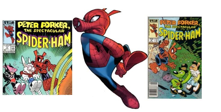 Spider Ham Так же известный , как Питер Поркер , созданный Марвел в 1963 году , как пародия на оригинального Паучка , комиксы с поросёнком выпускают и по сей день. Superman В 306-ом выпуске Action Comics и в фильме "Супермен 2" Супермену подарили новую способность "супер-поцелуй"который стирал воспоминания человека связанные с Кларком. Batman Популярный мем , где Бэтмен дает пощечину Робину взят из комикса «World’s Finest» 1965 года. В 153 выпуске комикса Бэтмен хочет найти и уничтожить Супермена за то, что он убил его отца. Робин пытается успокоить Бэтмена и получает хорошую оплеуху. Ну, как вы уже поняли, все это происходит в альтернативной вселенной и не имеет никакого отношения к основной сюжетной линии. Joker В одной из альтернативных версий Джокер содрал кожу с лиц всех членов Бэт-семьи, кроме Брюса. Ему он их демонстрировал. Помимо этого, он изнасиловал и изуродовал дочь комиссара Гордона, а затем заставил его смотреть на снимки с несчастной Барбарой. Ultron Первая в
