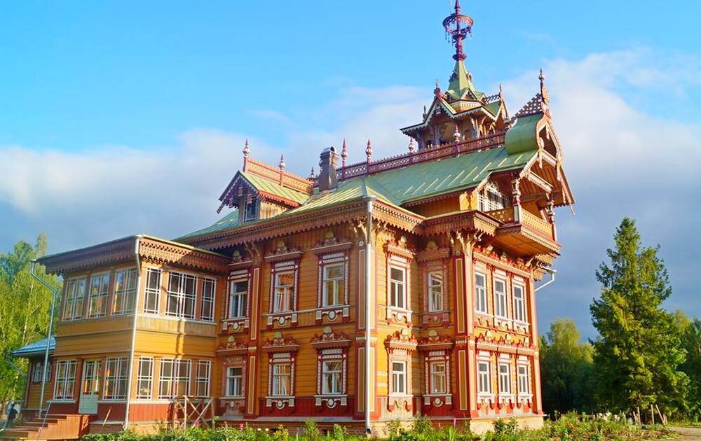 В самой глубокой глубинке, где нога человека если и ступала, то осторожно, обнаруживаются удивительные сокровища. Одно из них находится в деревне Асташово Чухломского района Костромской области (написания встречаются разные — Осташево, Асташево, на Яндекс-картах деревня обозначена как Осташово). Самой деревни сейчас уже нет, а память о ней живет в стенах сказочного терема, возвышающегося посреди леса. История его создания и возрождения удивительна. После отмены крепостного права, крестьянин из Асташово Мартьян Сазонов уехал в Петербург на заработки. Начинал он обычным плотником, но со временем стал владельцем плотницкой артели, занимавшейся строительством деревянных дач под Петербургом. В 1894 году умерла первая жена Сазонова, вскоре он женился на дочери дьячка Елизавете Алексеевне. Для молодой жены Мартьян и решил построить роскошный дом на родной земле. За основу был взят проект охотничьего домика для императора, разработанный Иваном Ропетом и опубликованный на страницах специализ