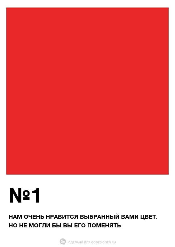 GoDesigner визуализировал типичные заблуждения из уст клиентов, чтобы улучшить понимание заказчиков и дизайнеров в совместной работе и для достижения общей цели ─ отличного дизайна! -1- Прежде чем вносить корректировки в макет, подумайте — поможет ли это дизайну решить задачи вашего бренда. Воплощайте в жизнь не собственные вкусы, а создавайте месседж для целевой аудитории. -2- Креативщики — не волшебники, они не читают ваши мысли, они их воплощают, поэтому сформулируйте словами то, за чем пришли, кому это должно быть понятно (ЦА), и какие задачи дизайн должен решить. Графический дизайн — это не абстрактное художество, это ответ на задачу языком графики и символов. -3- Не бывает «самой разнообразной» целевой аудитории. Вы вряд ли ориентируете свой продукт одинаково как для младенцев и мам, так и для бизнесменов, мусульман, сексуальных меньшинств и пенсионеров. Постарайтесь понять, что движет потенциальным покупателем воспользоваться услугой или продуктом, акцентируйте внимание не на