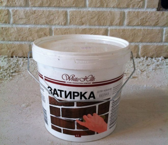 - Вещество бывает двух цветов: белого и серого. Цвет затирки для камня можно при необходимости скорректировать, добавив в вещество краситель.