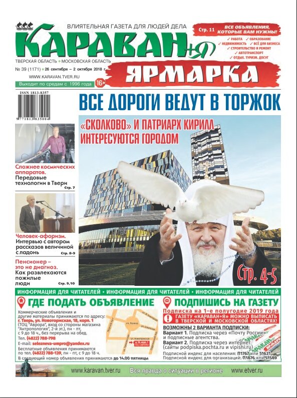 С 4 по 14 октября проходит Всероссийская декада подписки. В этот период можно подписаться на газету «Караван+Я» по льготной цене: редакция и «Почта России» предоставляют совместные скидки. Жителей Тверской и Московской областей приглашают не упустить такой шанс. Подписку можно оформить удобным для вас способом: 1. Через интернет (podpiska.pochta.ru и vipishi.ru). 2. Через «Почту России» и подписные агентства. Подписной индекс для населения: П1767 или 51631. Подписной индекс для организаций: П1876 или 51589. Скидка предоставляется только физическим лицам. Газета «Караван+Я» выходит на территории Тверской и Московской областей с приложением «Ярмарка объявлений». Работа, недвижимость, строительство, образование, туризм, бизнес – все, что вам необходимо знать, вы найдете у нас! Принимаются бесплатные объявления по телефону: 8(4822)788-139. Нужен больший эффект? Для Вас реклама и платные объявления! Тел.: 8(4822)788-798. Подробнее с правилами можно ознакомиться по ссылке.