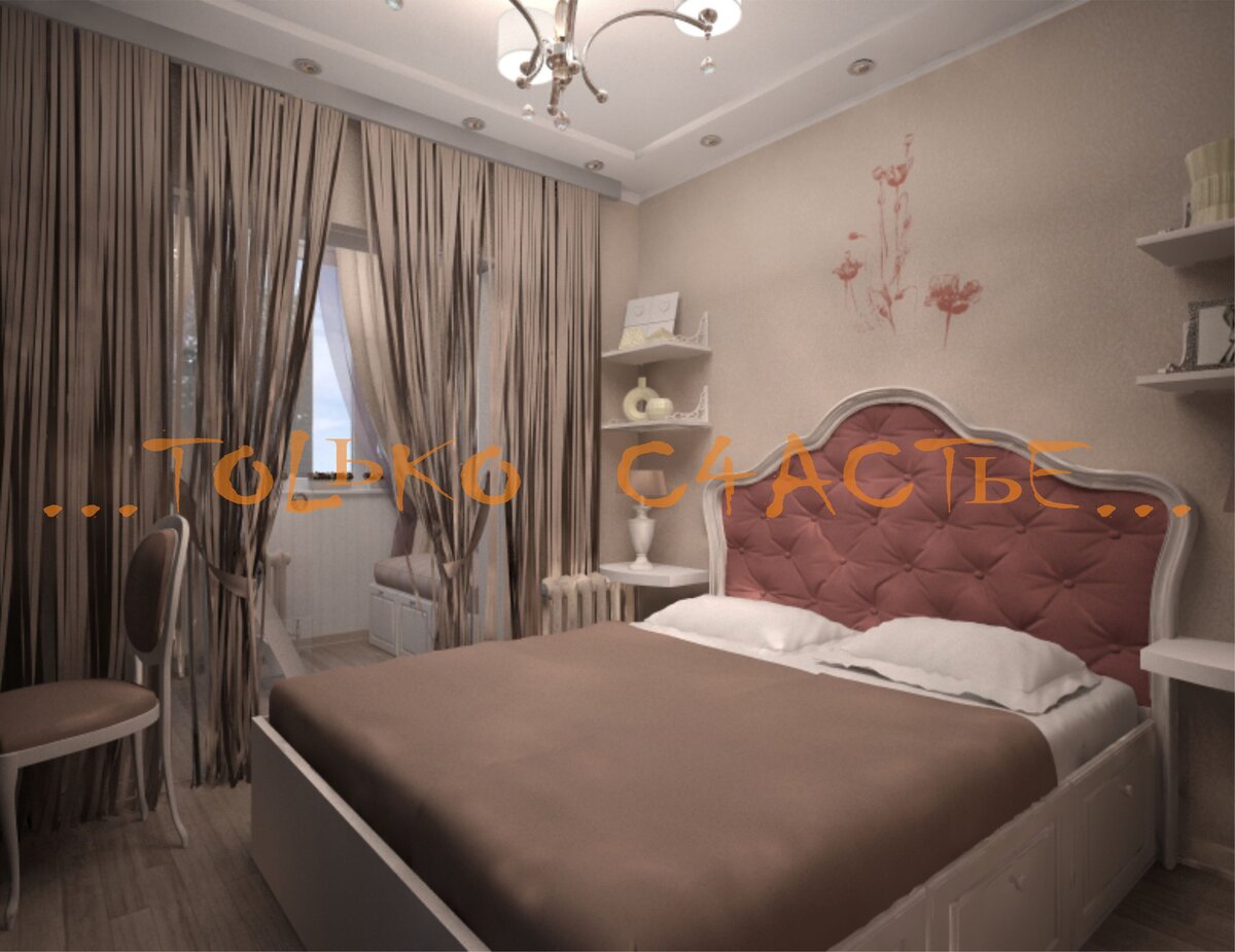 спальная – это место, где мы восстанавливаемся, отдыхаем, спим, нежимся, занимаемся любовью, шепчемся, читаем сказки, встречаем утро и провожаем день. как же сделать это – такое важное для нас место самым уютным, самым манящим и желанным. разберем на примере спальной комнаты из нашего проекта. - мягкое изголовье кровати создает ощущение тепла, защищенности и шика. именно оно позволит Вам удобно почитать перед сном, понежиться или даст поле для фантазий . - флористика на стене будет навевать позитивные мысли. это романтично , сентиментально и полезно для крепкого сна. это может быть роспись, печать на обоях или через трафарет. цвета должны быть спокойными , не кричащими. - спокойные и стильные шторы придадут помещению легкую сдержанность. желательно, чтобы шторы были однотонными. их можно просто *сексуально завязать или приспустить) - пол спальной комнаты должен быть субтильно теплым, на него должно хотеться встать босой ногой . лучше всего подойдет дерево или его имитация. - аксессуа