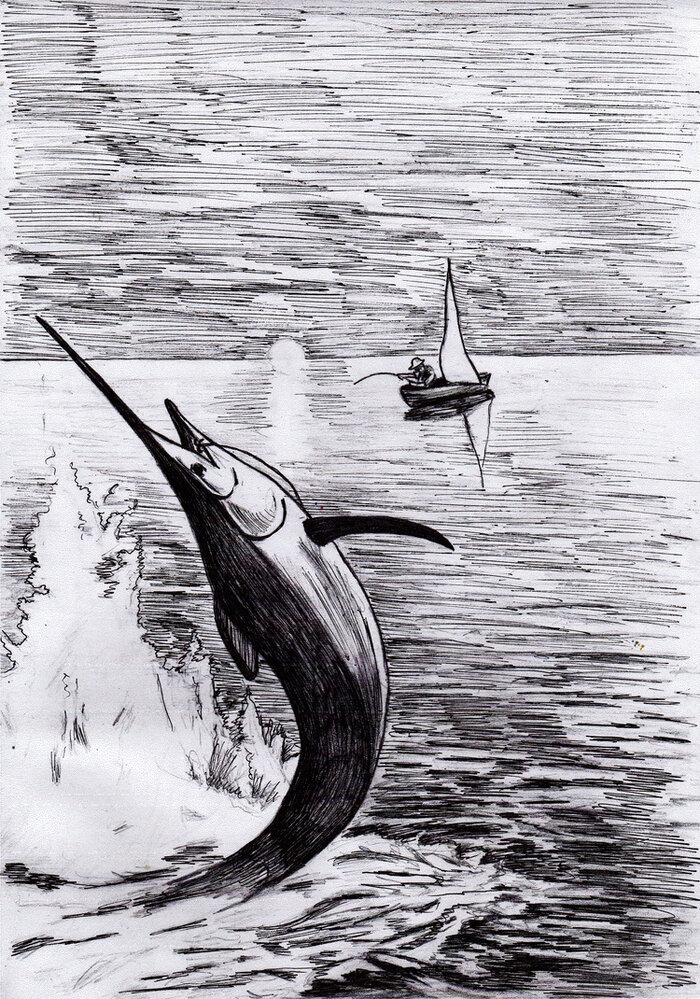 Рассказ «Старик и море» не назовёшь увлекательным. Мы ведь воспитаны на событийности, остросюжетности, а здесь мало что происходит. Дед на парусной лодке в одиночестве выходит в море, ему впервые за 85 дней везёт, он ловит большую рыбу. Четыре дня без отдыха старик Сантьяго пытается удержать и умертвить пойманную рыбу. Когда она умерла, он попытался притараканить её домой, но по дороге акулы склевали всего марлина. Домой Сантьяго привёз только голову и скелет. В общем-то, больше ничего не произошло. Просто упрямый дед поймал рыбу, а акулы её съели. Но если бы всё было так просто и неинтересно, рассказ не был бы знаменит на весь мир, не был бы экранизирован, мультиплицирован и инсценирован тысячи раз. А Эрнест Хеммингуэй не получил бы за него миллион долларов. Есть два главных момента, которые мы должны понять из рассказа. Первое — это образ старика Сантьяго. Второе — его отношения с морем. Ведь заметьте, рассказ не назван «Старик и рыба», «Старик и мальчик», «Старик и лодка». Нет,