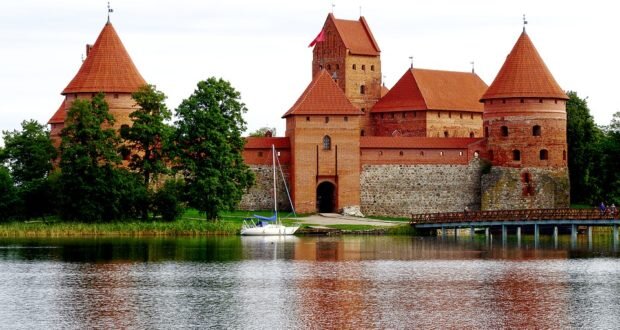 Тракайский замок расположен в на Юго — Востоке Литвы недалеко от города Тракай (и всего в 30 км от столицы — Вильнюса) на небольшом островке посреди озера Гальве (Голова в переводе), в русскоязычных источниках можно встретить такое название, как Трокенское озеро. Это довольно большое озеро площадью примерно 3, 6 км, средней глубиной до 13 м и встречающимися глубинами до 46 метров. На озере расположился 21 остров. Островки все мелкие и на одном из наиболее больших (искусственных) и стоит Тракайский замок. Сам город Тракай — резиденция литовских королей с 1375 года, лежит рядом на небольшом полуострове. Этот город был столицей Трокского княжества в XIV веке и назывался в то время Троки. Как говорят легенды — король Гедеминас охотился в окрестностях города и натолкнулся на безумной красоты холм, на котором и решил построить замок. На самом деле все было абсолютно не так. Для защиты от рыцарей тевтонского ордена стали возводить Островной замок. Замок строился из серого камня и красного кир