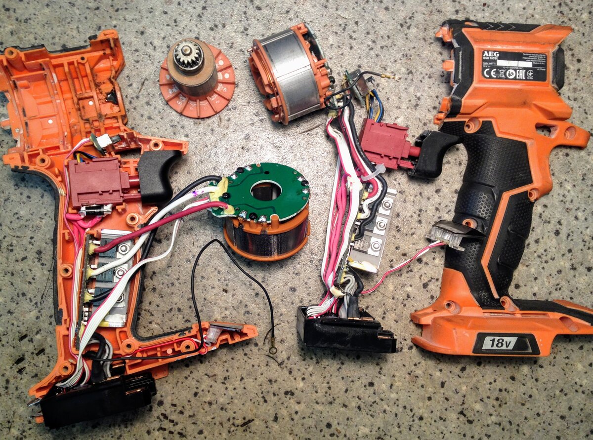 Ремонт шуруповерта. Кнопка шуруповерта это все что есть в шуруповерте! Меняем кнопку на шуруповерте AEG BSB18CBL. Комплект поставки кнопки состоит из статора, светодиода подсветки, кнопки, электронного блока, блока с разъемами АКБ.