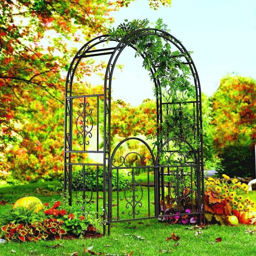 Любимый уголок сада уже давно не воспринимается как место с грядками или захламленный старьем участок. Ухоженные «оазисы» вызывают восхищенные взгляды гостей и соседей, мечтающих о создании подобной красоты на собственной территории. За один сезон достичь желаемого трудно, приходится ждать несколько лет, но мечту можно приблизить. Поможет в этом садовая арка. Рынок ландшафтного декора предлагает невероятное количество арок, выполненных из металла, пластика, дерева. На любой вкус и кошелек. Сочетание арки и растений Самые дешевые металлические арки можно приобрести за 100 рублей. Их высота колеблется от 200 до 250 сантиметров. Тяжелые растения такая арка не выдержит. Легкие вьюнки (ипомея, душистый горошек) будут лучшим и бюджетным вариантом. Арка из кованного металла Стильная. Красивая. Устойчивая. Долговечная. Традиционно сочетается с плетущимися розами и клематисами. Для окрашивания лучше выбирать дорогие краски, устойчивые к погодным условиям и надежно защищающими металл от корроз