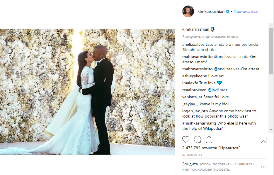 1. Давайте начнем со свадьбы Кимье-Кима и Канье, по данными сми на свадьбе был 68-метровый мраморный стол для гостей, чтобы все они могли видеть горизонт Флоренции. 2. О, и если это было недостаточно роскошно, то еще у гостей были выгравированы имена на мраморных местах у стола. 3. Стоимость свадьбы составила 184 млн рублей, и это не считая недели, которую пара провела в Париже со своими гостями перед торжественным днем. 4. Дэвид и Виктория Бекхэм арендовали целый замок в Ирландии на день их свадьбы. Конечно, вы, вероятно, помните два трона, на которых сидели молодожены во время свадебного приема. 5. Кроме этого пара подняла фиолетовый флаг над замком с инициалами «В. Б. Д.». Цвет флага, конечно, соответствовал их второму свадебному наряду фиолетового цвета. 6. Когда Бейонсе выходила замуж за Джей Зи, на свадьбе было 70 000 ее любимых цветов (белых орхидей), привезенных специально из Таиланда, чтобы украсить пентхаус «NYC Jay», где пара играла свадьбу. 7. Для своей свадь