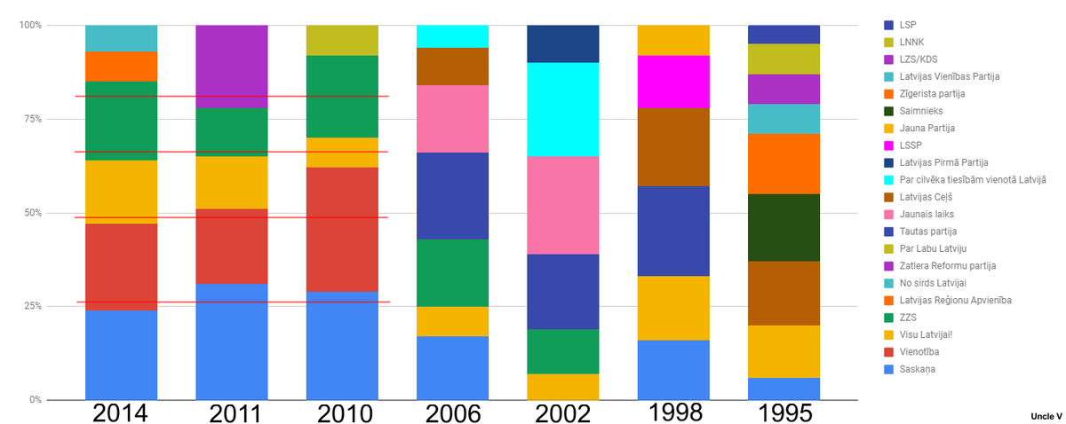 Итак, а сейчас немного из мира удивительных загадок выборной математики и чудес Латвийской политологии. Вас не удивляет невероятно странная ситуация, при которой половина населения выехала из страны прочь, а те что остались откровенно бедствуют, но все равно с ослиным упорством, каждые 4 года - продолжают “голосовать” за одни и те же партии? Я вам это покажу в графиках и числах...