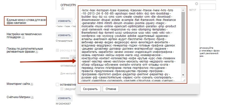 Этим оператором рекламодатели охотно пользуются. Позволяет исключить из запроса не нужные и нецелевые слова. Чаще всего такие как: форум, скачать, бесплатно, дешево, реферат и т.п. Позволяют не продавать системы кондиционирования, ищущим курсовую на указанную тему. Для этого просто к ключевому слову системы кондиционирования добавляется слово реферат со знаком минус. Получается системы кондиционирования -реферат Такой момент. Бывают ситуации, когда таких вот паразитных запросов просто огромное количество, счет может идти на сотни, они могут составлять до 70-80% всех связанных запросов. Часто рекламодатели использую так называемую портянку из минус слов (когда таких минус-слов указывается 30-40 а то и больше). Это позволяет сузить целевую область, но все-равно останутся нецелевые показы, которые будут тянуть CTR объявления вниз и цену за клик вверх. Один из вариантов выхода из такой ситуации закавычивание (использование фразового соответствия). Но т-с-с. Пусть конкуренты сливают день