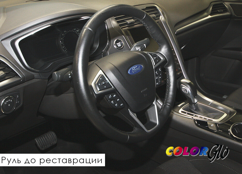 ПЕРЕТЯЖКА РУЛЯ В САЛОНЕ АВТОМОБИЛЯ FORD MONDEO – БЫСТРО И КРАСИВО – В АВТО-АТЕЛЬЕ COLOR GLO RUSSIA Вместо старого потертого руля с царапинами – новый стильный руль. Перетяжка позволяет не только преобразить рулевое колесо, но и сделать его существенно удобнее, эргономичнее и приятнее в поездке. Преображение руля в салоне автомобиля Ford Mondeo: · Качественная автомобильная кожа Nappa Ferrari (производство Италия). · Шов – классический немецкий. · Отделочная строчка – нить черная. Суммарное время производства работы ОТ ДЕМОНТАЖА ДО МОНТАЖА РУЛЯ – 1 ДЕНЬ. Скоро холодная погода даст о себе знать, что называется, по полной программе, советуем воспользоваться нашей услугой УСТАНОВКА ПОДОГРЕВА РУЛЯ. СДЕЛАЙТЕ СВОИ ПОЕЗДКИ КОМФОРТНЕЕ! Сделаем за 1 день! Подробнее