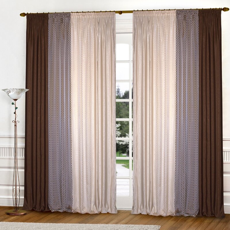 Войдя в любое помещение, мы в первую очередь обращаем свое внимание на окно. Поэтому от его декорирования может зависеть не только облик квартиры, но и наше настроение. Комбинированные шторы сегодня достаточно актуальны и широко используются при оформлении окон. Комбинированные шторы могут состоять из тканей, отличающихся между собой по фактуре и цветовой гамме, и при правильном сочетании оттенков они могут украсить практически любую комнату квартиры. Выбор стиля штор и их цветовой гаммы необходимо делать в зависимости от отделки комнаты и мебели. Двухцветные портьеры с вертикальными полосками визуально увеличивают высоту потолка, что необходимо очень многим квартирам. Если мы хотим сделать акцент на основной тон штор, то он должен очень гармонично сочетаться со всеми остальными его оттенками. Создание более ярких портьер и аксессуаров достигается комбинированием на контрасте. Большим плюсом двухцветных штор является то, что с их помощью в зависимости от настроения и времени года, пом