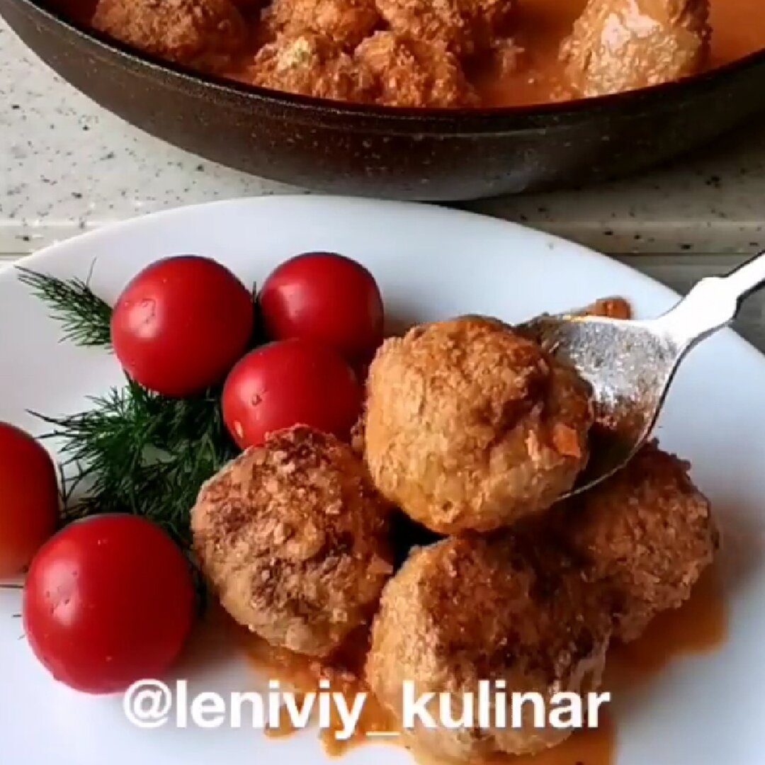 Выкладываем шарики на сковородку (разогрета, смазана маслом). Ждем пару минут, чтоб они чуток "схватились". Далее добавляем пару ложек томатной пасты и сметану, солим, заливаем водой. Можно в отдельной чашке смешать воду,пасту и сметану, а потом залить.