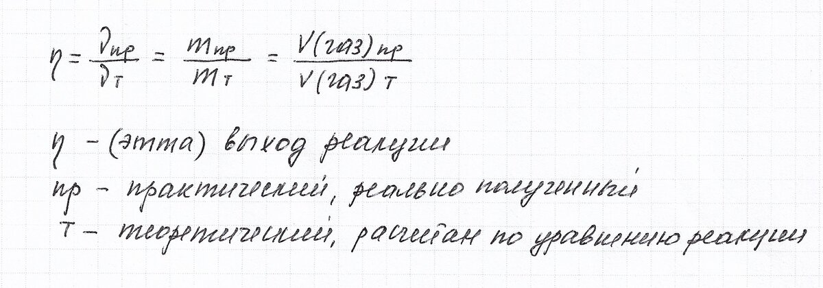Формулизируем вопрос задачи "Определите выход продукта реакции", - записываем соответствующую формулу и анализируем ее компоненты.