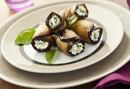 Рецепт: Рулетики из баклажанов, с чесночной начинкой. Порадуйте родных