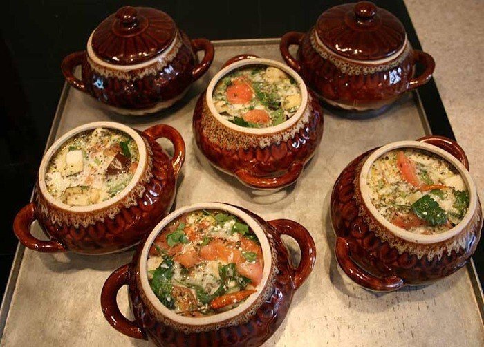 Выбранный набор продуктов сложить в чугунок, казан, утятницу, либо порционные горшочки (на что уходит 10-15 минут), залить кипятком/бульоном/молоком, поставить в духовку на средний жар на 2-3-4 часа и забыть до ужина. В итоге при относительно низких временных затратах и усилиях у вас всегда есть дружественное к ЖКТ горячее сытное полезное блюдо на обед/ужин. У многих сейчас есть кухонная техника с программированием, что позволяет готовить такие блюда даже дистанционно (нажал на кнопочку в смартфоне, пришел домой - обед готов).