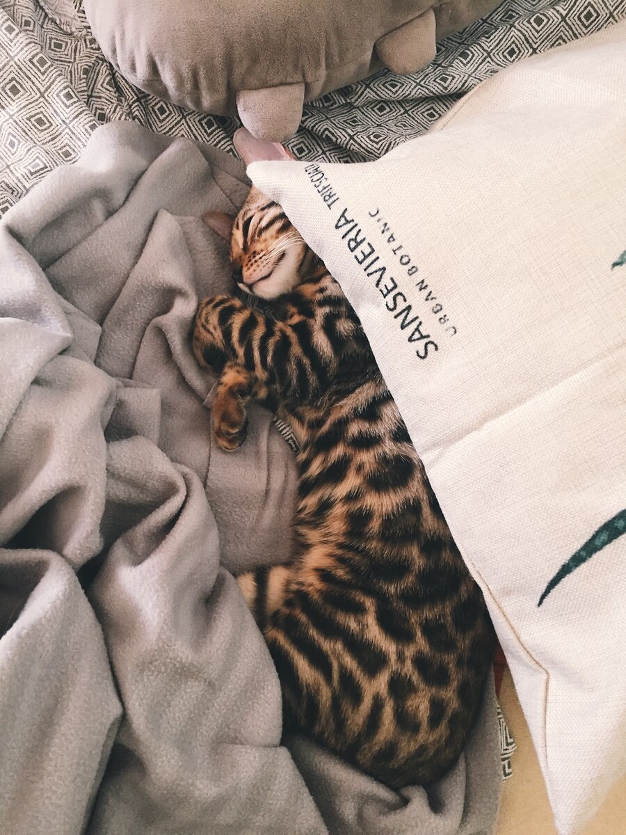Котята, как и щенки, сами по себе, очень активны. Только последние вряд ли смогут запрыгнуть на подоконник, залезть на высокий комод и свернуть оттуда горшок с фикусом. А котенок может. Любой. А если это - бенгал с кипящей кровью и горящим сердцем, не сомневайтесь, фикус отправится на пол в три раза быстрее. Наш вел себя соответственно своей породе - носился, играл со всем подряд, пытался отъесть листья у юкки и сорвать жалюзи. И дело не в том, что он хотел нам напакостить или что-то такое, нет, ему просто по вечерам нужно было куда-то выпускать свою энергию. А мы ему в этом помогали. Чтобы спал крепче. На самом деле я уже писала о том, что котенок серьезно мешал нам спать. Когда мы ложились - он начинал играть. На ручках не сидел вообще, да и сейчас как-то тоже не особенно любит это дело. А мы что? А мы спать хотим! На форумах советовали: ложитесь позже, часов в 12 ночи, успеете и наиграться с ним и все остальное. "Да вы что, мы спать ложимся в 9-10... Какое там 12!" (нервничая, отвеч