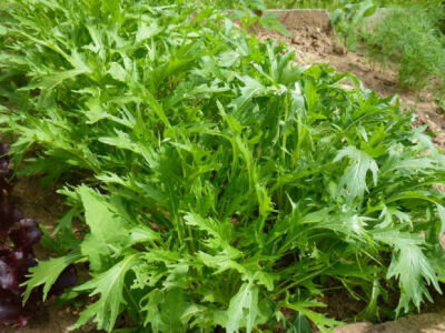 Еще пять лет назад я даже не знала о такой культуре, как мизуна. Меня угостили листьями, и я решила, что это салат, очень похожий на рукколу. Как выяснилось, интернет подсказал, что это японская капуста. Очень удивилась, но это факт. Она – ближайший родственник китайской и пекинской капусты, но кочана не образует. Она состоит из красивой, кружевной розетки листьев, которые могут вырастать до 40 см в длину.