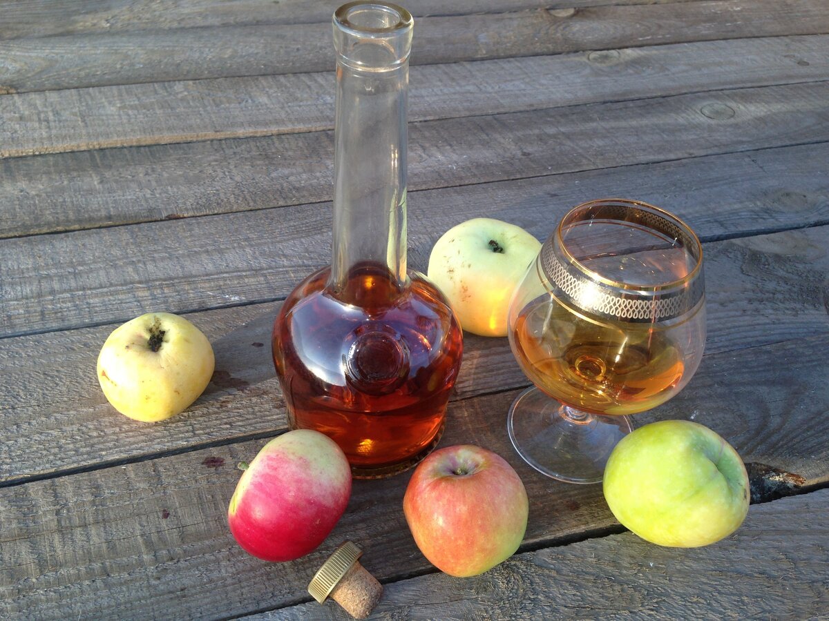 Популярный в Нормандии крепкий алкогольный напиток обладает насыщенным приятным вкусом и превосходным ароматом. Представленный традиционный рецепт кальвадоса из яблок в домашних условиях поможет каждому получить продукт, практически такой же, как натуральный. Стоит отметить, что для приготовления яблочной водки можно использовать идеальный состав, когда сладких и горьких яблок берется по 4 части, а кислых – 2 части. Ингредиенты: Способ приготовления: Прежде всего, важно помнить, что фрукты мыть не нужно, потому как вы погубите дикие дрожжи, находящиеся на их кожуре. Перебранные яблоки порезать кубиками, отправить под пресс или сложить в соковыжималку. Поставить яблочную массу настаиваться на сутки при комнатной температуре, накрыв марлей емкость. Рекомендуется оставить в таре место, потому как при бурном брожении на поверхности будет выделяться пена и мезга. Образовавшуюся пену снять, отжать сок, перелить его в емкость, где будет продолжаться брожение. Сдел