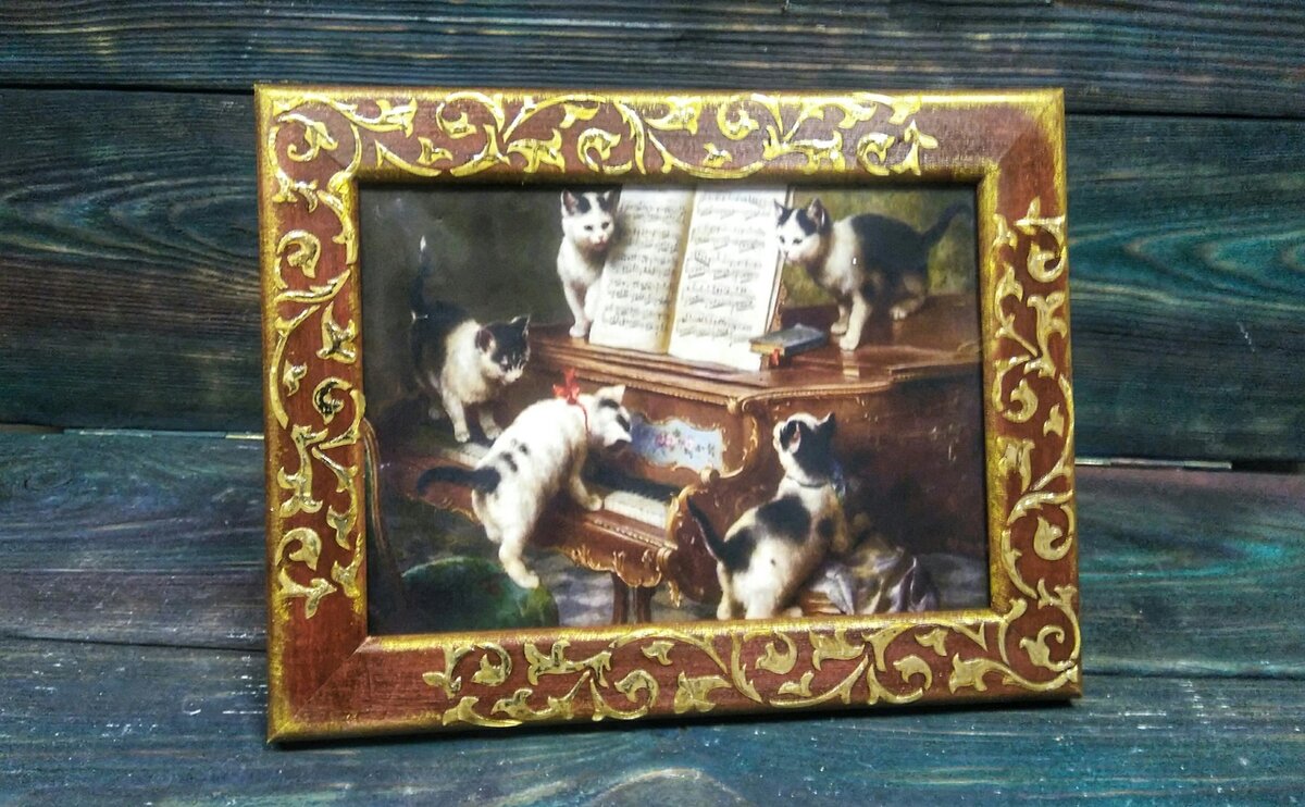 Рамка с золотым узором + Как сделать крепление для самодельной рамки. Видео.