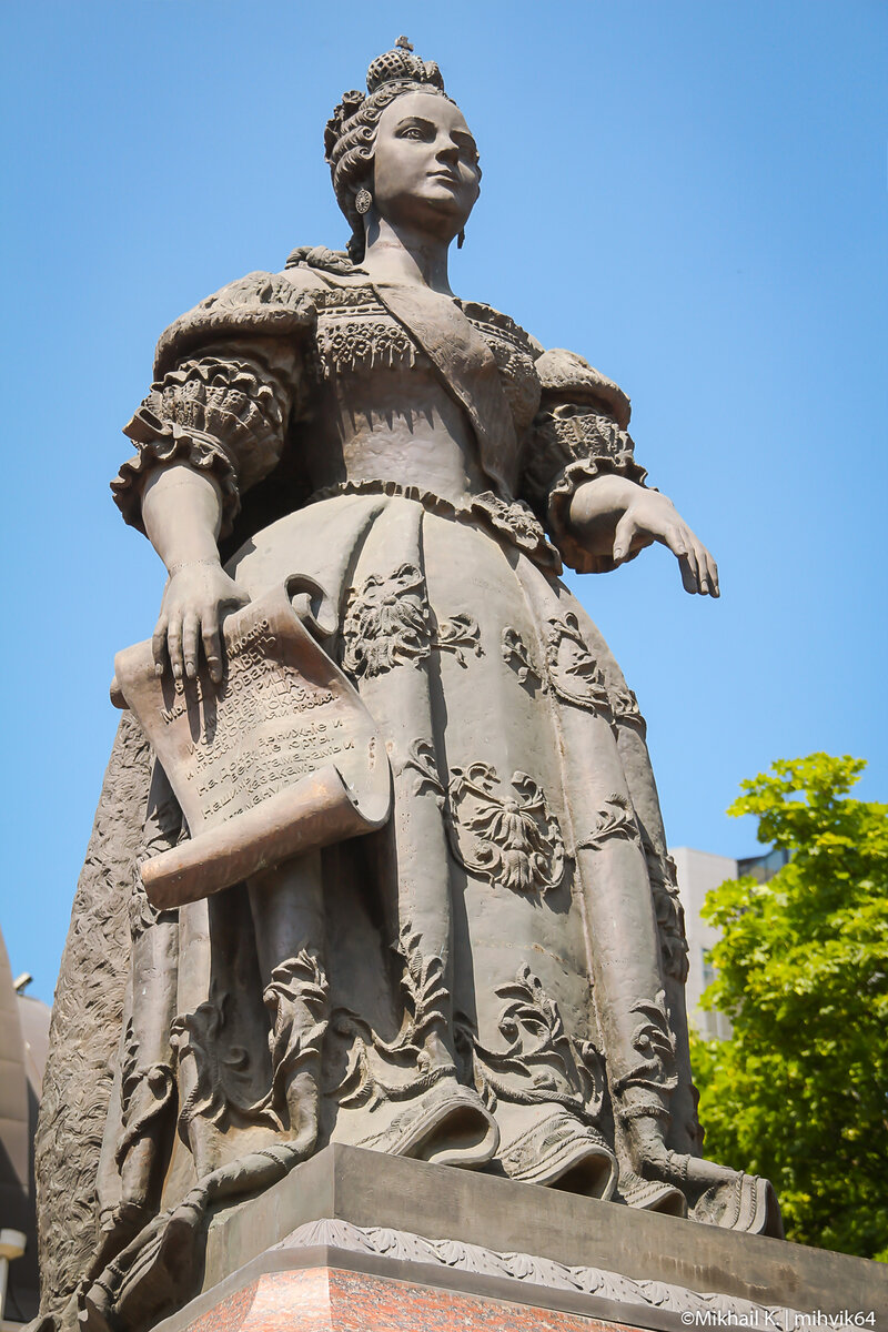 В центре Ростова-на-Дону (на территории Покровского сквера) расположен памятник императрицы Елизавете Петровне. Благодаря Елизавете Петровне и появился Ростов-на-Дону. Именно она издала указ о создании Темерницкой таможни - первого постоянного поселения на территории, где в последствии образовался город Ростов-на-Дону. Именно эта историческая справка и написана на пьедестале памятника. А еще пьедестал украшен вот такими барельефами.