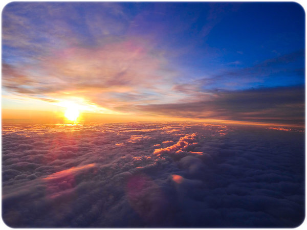 Летим. Беспроблемный полет в хорошую погоду. Солнце, не успев закатиться, уже появляется на северо-востоке.