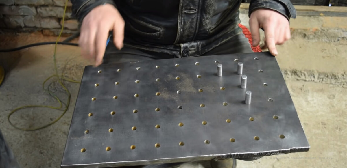 Здраствуйте, сегодня хочу рассказать как сделать выдвижной стол для сварки, так как у многих не хватает места и не так много сварочных работ, то лучше всего сделать этот стол выдвижным, что бы он не занимал постоянно место. Для того что бы сделать такой стол, в первую очередь нам нужен обычный основной стол в котором снизу ни чего нет. Суть этого стола такая, мы выдвинули этот стол, поработали, заварили то что нам нужно и убрали его обратно. Как его сделать? Берем кусок метала 16 миллиметров, отпиливаем кусок по размеру 50х30 см, затем сверлим в неё отверстия радиус которых 10, а шаг между ними 50 мл. Вы спросите зачем отверстия? Все просто мы делаем специальные зажимы под этот радиус, для того что бы нам было легче варить, мы берем 2 метала ложим друг на друга, затягиваем нашим зажимом, и можно варить метал ни куда не убежит Ну вот и все наш стол готов, все просто ничего сложного, варите на здоровье, главное не забывайте, варить без перчаток и маски запрещено! Если вам понра