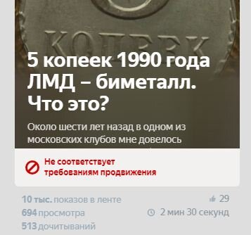 Были предложены другие темы, например – 5 копеек 1990 года ЛМД – биметалл. Что это? – но и они были отвергнуты без объяснения причин. Здесь уж совершенно невозможно придраться от слова «совсем», но обращение в Службу поддержки не помогло и здесь. Служба только раз за разом отсылала меня к правилам, изложенным по ссылке, не объясняя, какое же из них они считают нарушенным.