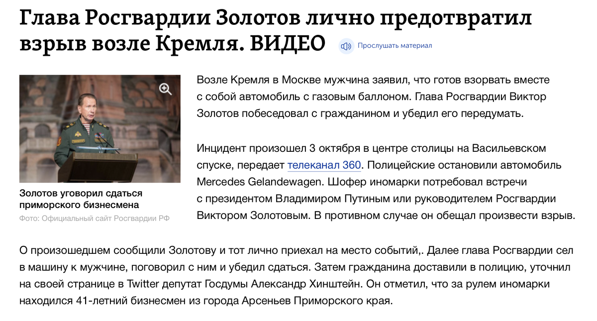 Более жалкую постановку еще поискать. Героя России ему за этот недоподвиг еще дайте, и орденов мешок. Этому бывшему охраннику без образования надо цирк возглавлять, а не Росгвардию.
