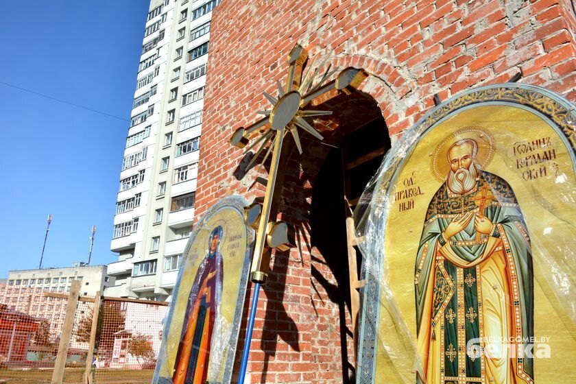 В минувшую среду башню с изображениями местночтимых святых освятил архиепископ Гомельский и Жлобинский Стефан. Первую в стране часовню с часами начали строить на проспекте Октября всего три месяца назад. Заказчиком строительства выступил Гомельский мотороремонтный завод, проект разработали и воплотили в жизнь частные организации. Сегодня часозвоня практически готова, осталось выполнить отделочные работы. Это трёхъярусное сооружение 13 метров в высоту. Первые два яруса украсят панно с изображением Манефы Гомельской, Иоанна Кормянского и других местночтимых святых. На последнем, третьем, ярусе чуть позже установят четыре циферблата и электронно-механический звонарь, позволяющий звучать колоколам без участия человека. Для обслуживания механизма внутри строения смонтирована лестница. Окончательным штрихом станет покрытие кирпичных стен декоративным материалом. Владыка Стефан поблагодарил всех, кто принимает участие в строительстве, за большой вклад в духовное развитие города. Э