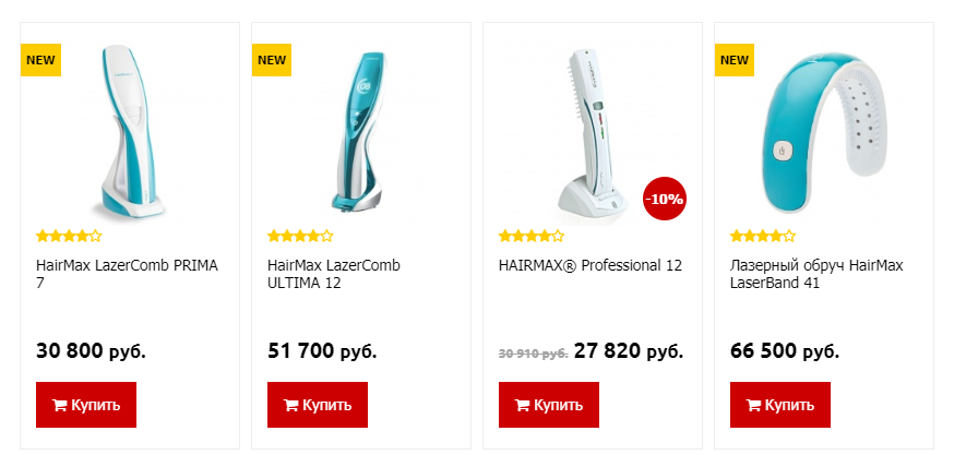 Цены на лазерные расчески колеблются от 500 р до 50 с лишним косарей.