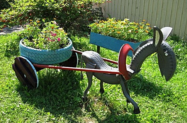 Украшение сада — дело непростое, творческое. Можно пригласить ландшафтного дизайнера и доверить ему свое детище. Но гораздо интереснее, используя подручные материалы, создать нечто неповторимое и оригинальное. Старые автомобильные покрышки станут неисчерпаемым источником вдохновения, стоит лишь включить фантазию. Что можно сделать из покрышек Что потребуется для работы Начните с простого Самый востребованный арт-объект в саду — цветник (вазон, вертикальная клумба, цветочная изгородь). Скомбинируйте шины разного диаметра в красивую композицию (лучше многоярусную), покрасьте, скрепите саморезами. Выстелите внутреннюю часть геотекстилем, получится аккуратнее. Заполните грунтом — клумба готова! Расположив несколько шин так, чтобы сложились очертания автомобилей (или другой техники), и вкопав их в землю на 1/3, можно устроить детский автопарк. Не забудьте предварительно прокрасить детали. Садовые качели — классика жанра. Лучше подвешивать их на цепях, так как веревка сильно растягивается пр