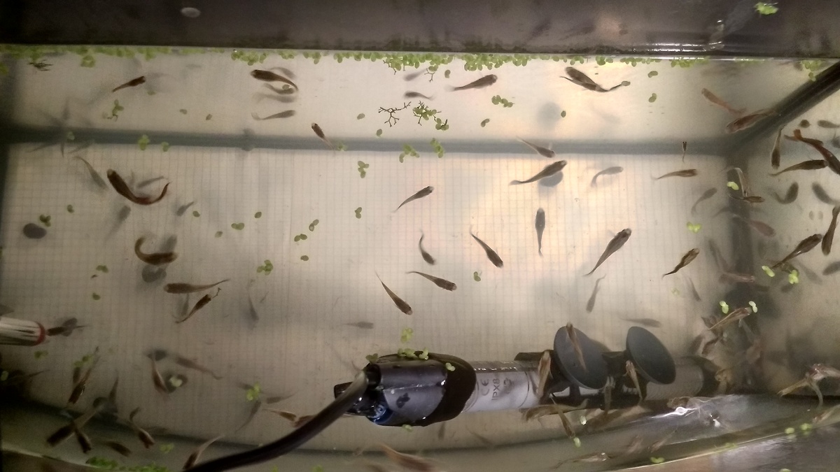 В связи с похолоданием температура с вечера (после того, как ушел спать) резко понизилась. Отопление еще не дали. На утро обнаружил довольно низкую температуру в маленьком гуппятнике: 17-18*С. Сразу включил им "грелку". Через пол-часа/час температура поднялась до 20*С, насколько мне известно - "минимума выживаемости" (с температурой "комфортного минимума" 22*С). Получается, что часов 10 совершенно точно они провели при весьма низкой температуре (аквариум этот маленький, 45 л. и температура меняется быстро, вечером/ночью наверняка охладилась сразу, вслед за погодой и температурой в комнате). Все живы, бодрые. Закаленные гуппи.