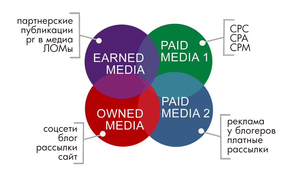 Все мы понимаем, что в PR главная задача – создать и донести правильный месседж до клиента. И сегодня мы расскажем, какие каналы для этого есть и с какой целью их надо использовать. Есть 3 основных типа медиаканалов: Owned Media (собственные медиа) – все каналы и площадки, принадлежащие бренду: сайт, страницы в соцсетях, блоги, рассылки. Они создаются и полностью контролируются самими компаниями. Там сидят лояльные пользователи вашего продукта и потенциальные потребители, привлеченные с помощью рекламы и др. инструментов. И от качества контента на этих площадках напрямую зависит превратятся ли посетители сайта в покупателей. Особенности: канал призван для прямой коммуникации с вашими потребителями и выстраивания с ними долгосрочных отношений. Он относительно бесплатный, его можно контролировать и прогнозировать. Earned Media (приобретенные медиа) – самый лучший канал с точки зрения PR, когда качество продукта само заставляет потребителей активно и совершенно бесплатно рекламировать