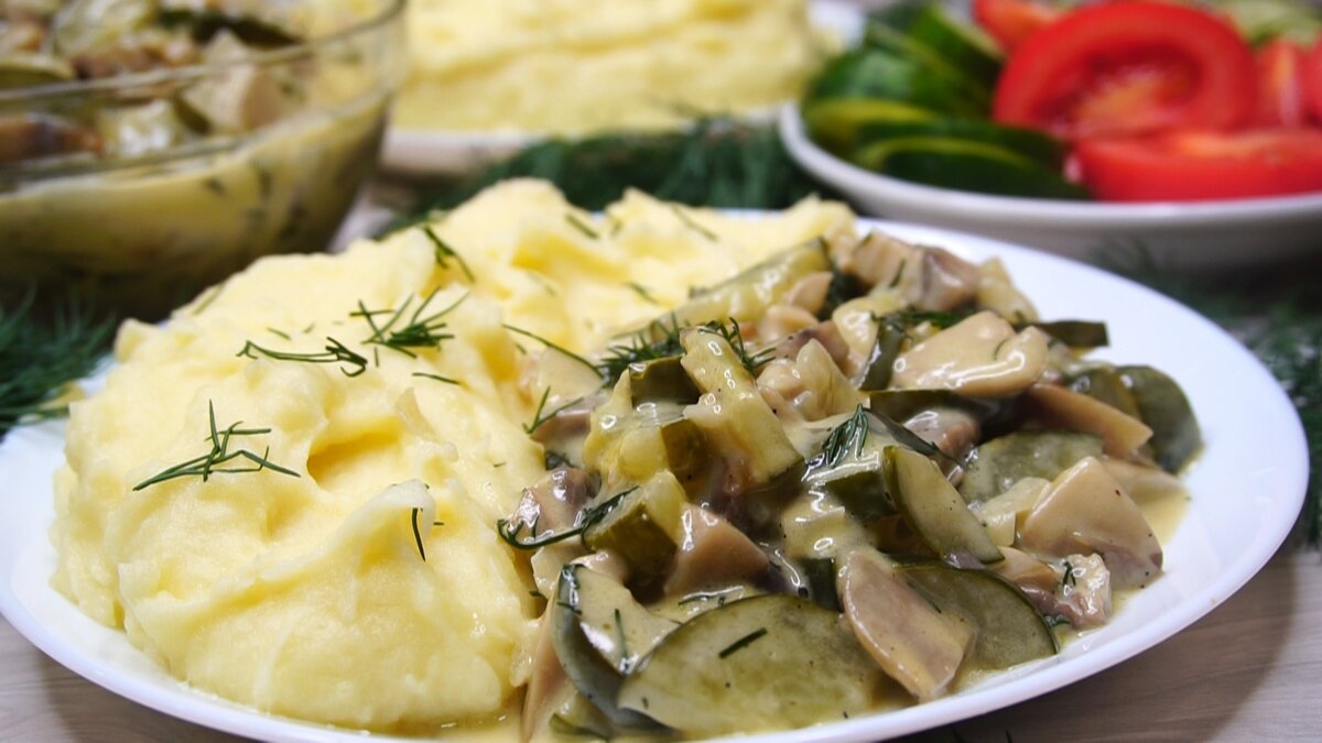 Огурцы тушенные в сметане с грибами. Звучит непривычно, но на вкус очень вкусно. Готовится быстро и могут разбавить однообразное будничное меню необычным вкусом. ИНГРЕДИЕНТЫ